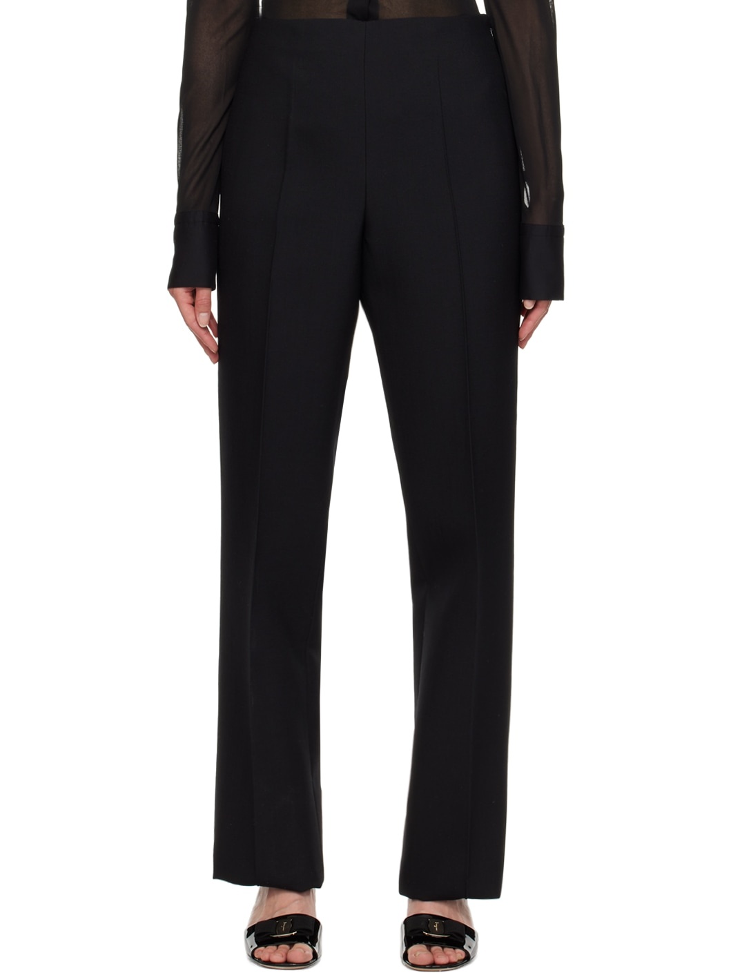 Virgin wool crepe trousers. · High-rise · Creased legs · Zip closure at side · Darts at back Supplier color: Nero
