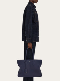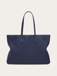 The classic tote, Ferragamo style. Cut from Italian calfskin leather with a smooth finish, this much loved carry all folds slightly at the sides to create a new, original silhouette. This large, capacious version has a lined interior with a flat pocket, and a golden fob keyring which hangs playfully from the mid-length top handle. - A) Height 11.8 IN B) Length 16.5 IN C) Width 4.3 IN - Composition: calfskin - Handle drop: 9.4 in/24 cm - Large - Made in ITALY - Product code: 219908 789537