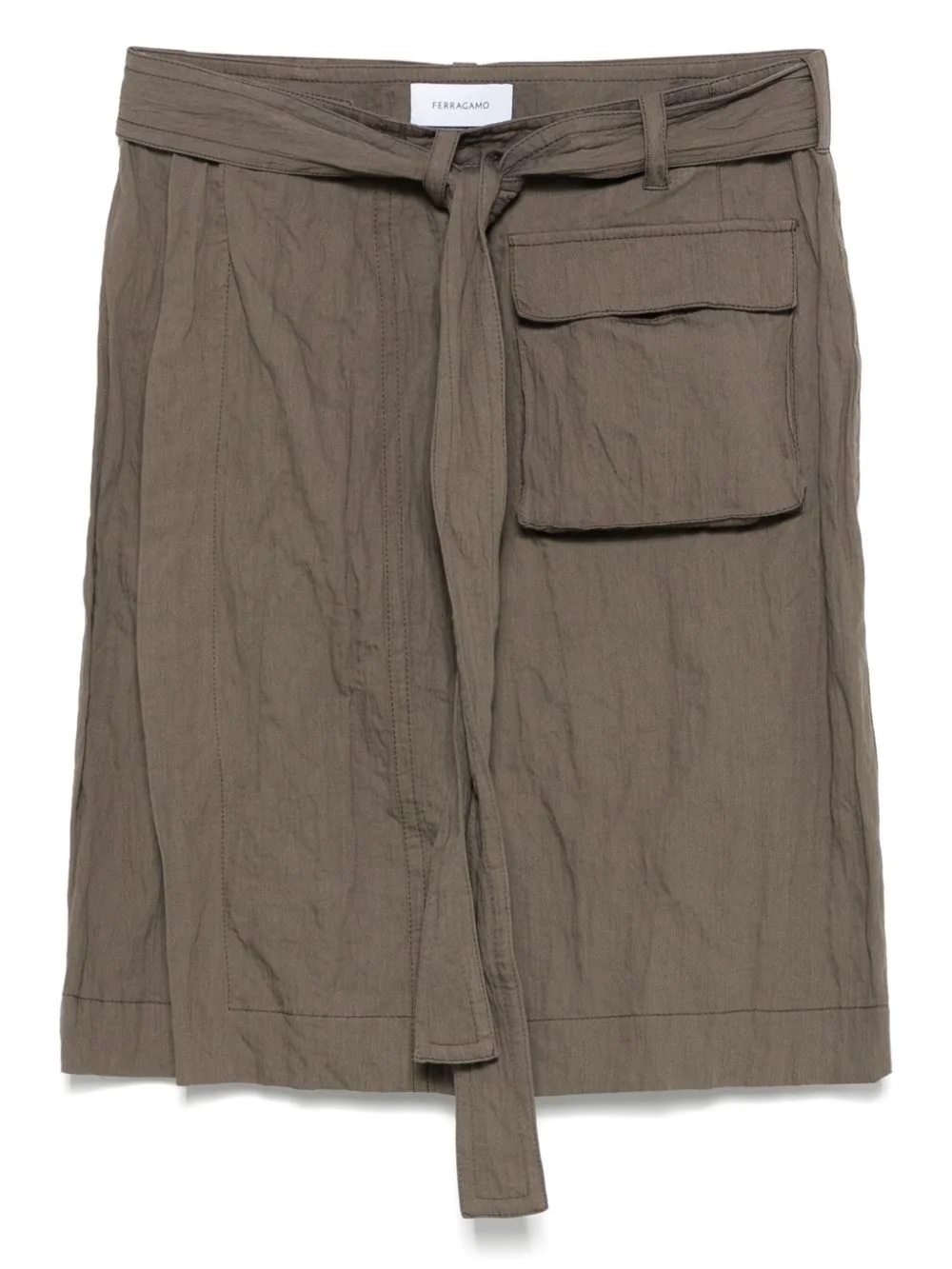 straight skirt Highlights - Grey - Front tie fastening - Belt loops - Front flap pocket Made in Italy Composition Cotton 87%, Metallised Fibres 13%