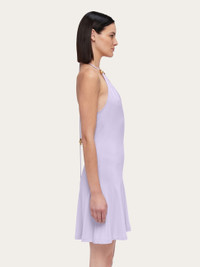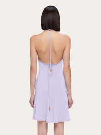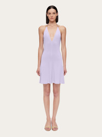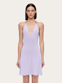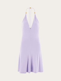 V-neck fit and flare dress made of soft, stretch jersey viscose. The slim string that ties at the neck is adorned with golden beads at both ends. Ideal for summer nights, this easy on mini dress has a deep V-neck, and a short, flared skirt. - Composition: 96% viscose, 4% elastane - Made in ITALY - Product code: 13F770 775636