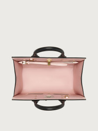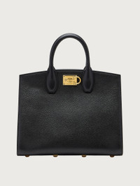 This sleek, chic new edition to the Ferragamo Studio line is a modern work of art. The geometric shapes symbolize the understated elegance of this latest collection, with distinctive details that bring this truly unique piece to life. The clasp is the iconic Gancini buckle in an antique gold finish, while the contrasting colored interior features a handy zip pocket with detachable pouch for extreme versatility. The squared metal studs on the base are a practical, chic touch that make it immediately recognizable. Detachable shoulder strap for hands free style. - height 24.0 CM / 9.4 IN length 28.0 CM / 11 IN width 15.0 CM / 5.9 IN - Composition: hammered calfskin - Product code: 210398 740941 - Made in ITALY