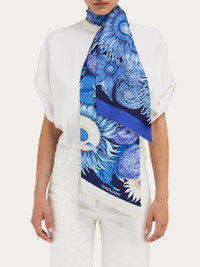 The smartest wardrobe accessory: the pure silk bandeau can be worn tied around your neck, in your hair, as a belt or even as a detail to personalize your bag- with its versatility, the only limit is your imagination. This version is decorated with the Sunflower print. - length 62.9 IN width 7.8 IN - Composition: 100% silk - Made in ITALY - Product code: 320973 780096