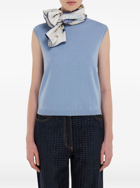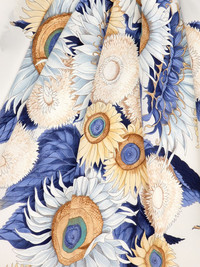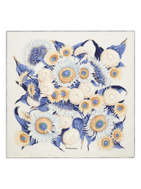 Sunflower-print silk scarf Highlights - Off-white and blue - Silk - Sunflower print - Square shape Made in Italy Composition Silk 100% SIZE & FIT Measurement LENGTH 35.43 in(90 cm) WIDTH 35.43 in(90 cm)