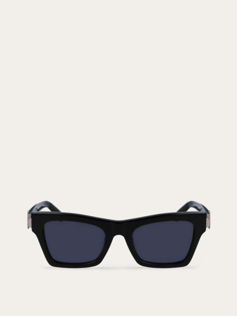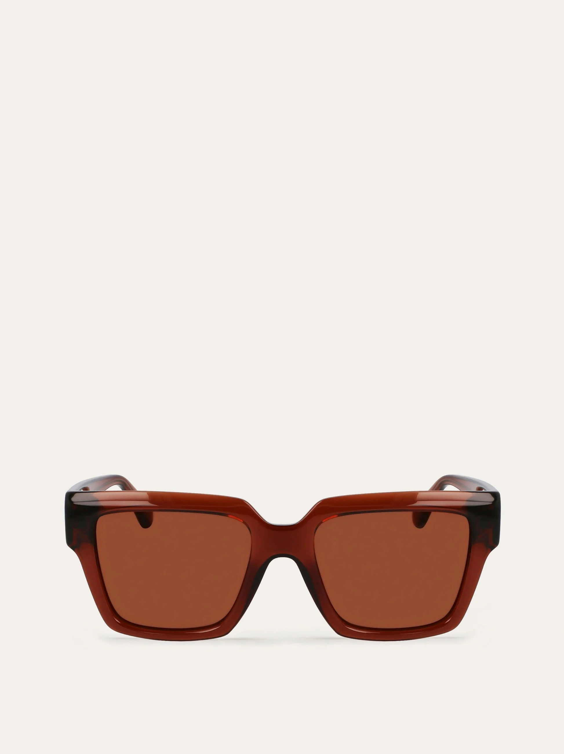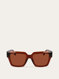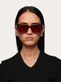 The rectangular shape of these oversized sunglasses is modern and elegant. The brand's iconic symbol, the stylish Gancini, adorns both temples, which reveal metal wire in the core of the transparent colour variations - Composition: injected acetate - Anti-UV, anti-scratch lenses - Global fit. Lens-nose-temple size: 54-19-140 mm - Frame compatible with graduated lenses - Made in ITALY - Product code: 51H014 774533