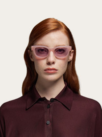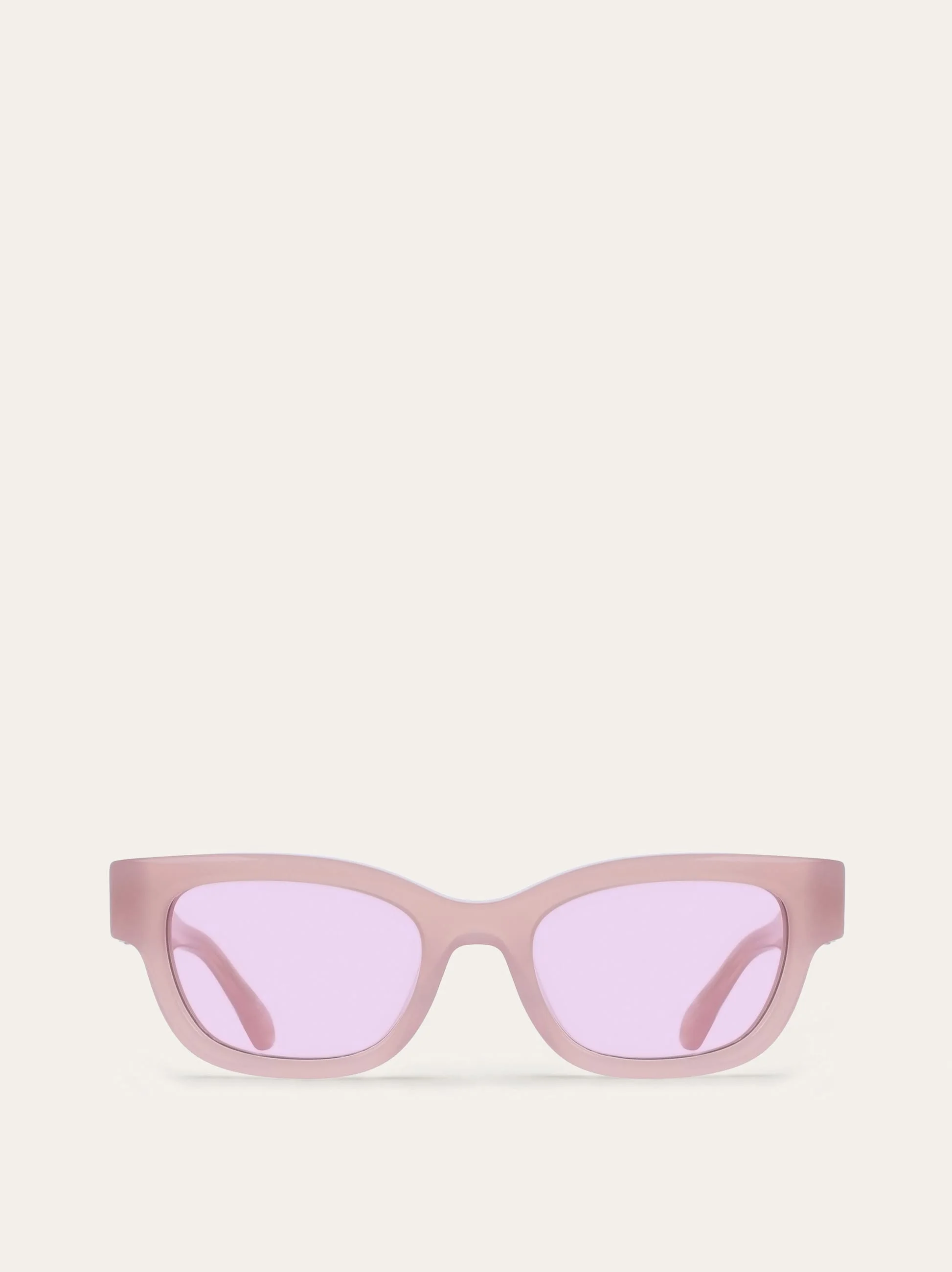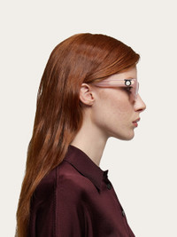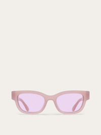 Women’s rectangular acetate sunglasses characterized by bulky profiles. The Gancini ornament on the temples incorporates the hinge, thus becoming a functional element too. The temples reveal their metal core in the transparent colour versions. - Composition: acetate - Anti-UV and anti-scratch lenses - Universal Fit. Lens-nose-temple size: 52-20-140 - Frame compatible with graduated lenses - Made in ITALY - Product code: 51H067 786647