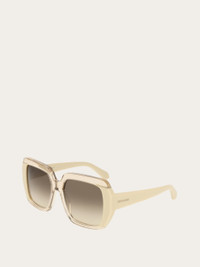Modified rectangular women’s acetate sunglasses. The frame features two different acetate colourings producing a sophisticated chromatic effect. The Ferragamo logo is lasered on both temples. - Composition: acetate - Anti-UV and anti-scratch lenses - Global Fit. Lens-nose-temple size: 56-17-145 - Frame compatible with graduated lenses - Made in ITALY - Product code: 51H081 791529