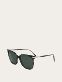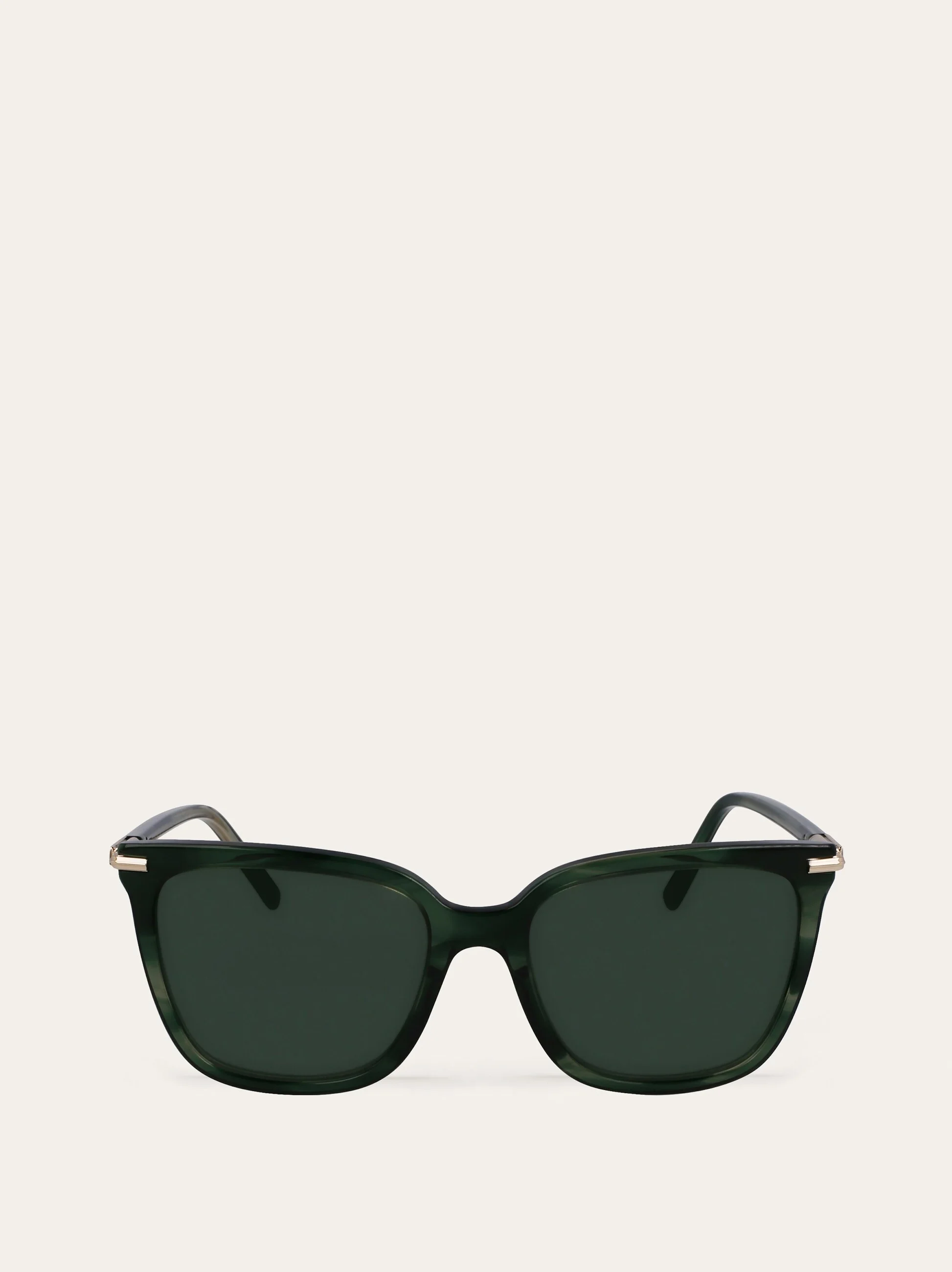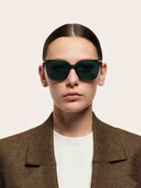 This women's butterfly-shape acetate model has slender metal temples with long acetate tips. The temples are graced by the iconic prism detail that has both a decorative and functional role, integrating the hinge and acting as an end piece on the frame. - Composition: acetate - Anti-UV and anti-scratch lenses - Global fit.|Lens-nose-temple size: 56-18-145 mm - Frame compatible with graduated lenses. - Made in ITALY - Product code: 51H037 782071