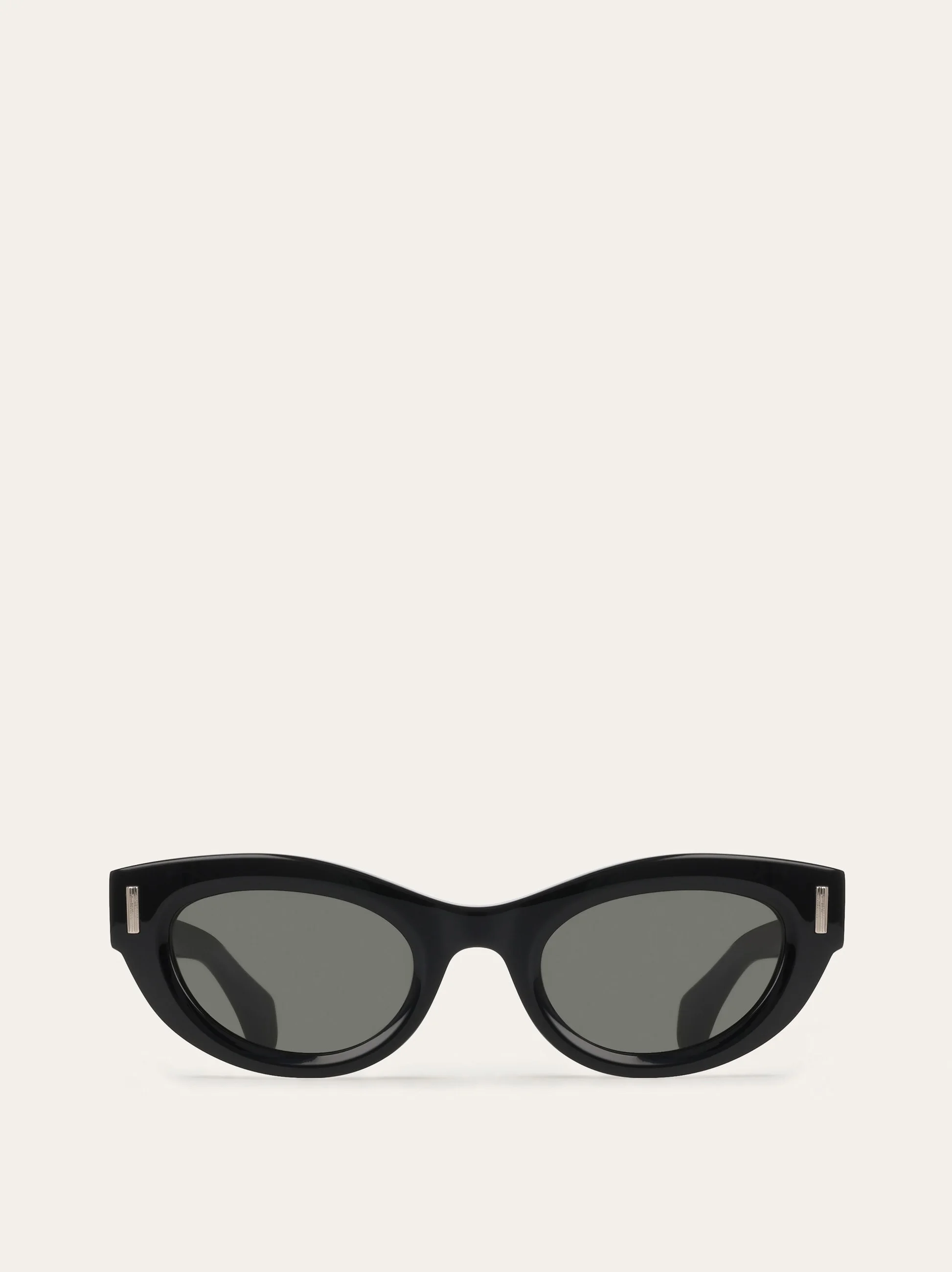 Women’s butterfly sunglasses made of Eastman Acetate Renew™, a blend of bio-plastic derived from sustainably sourced wood pulp, and recycled content recovered from industrial processes. The construction’s visible milling produces attractive curves on the upper part of the frame. Metal rivets on the front of the frame join it to the temples, which feature a lasered Ferragamo logo. - Composition: Eastman Acetate Renew™ - Anti-UV and anti-scratch lenses - Global Fit. Lens-nose-temple size: 49-23-145 - Frame compatible with graduated lenses - Made in ITALY - Product code: 51H062 786667