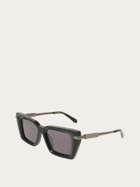Women’s sunglasses with a rectangular acetate frame and metal temples featuring linear effects. The prism detail has a plate with a lasered Ferragamo logo and incorporates the flex hinge. The temple tips are made of acetate to ensure comfort and wearability. - Composition: acetate - Anti-UV and anti-scratch lenses - Global Fit. Lens-nose-temple size: 52-18-140 - Frame compatible with graduated lenses - Made in ITALY - Product code: 51H089 791601