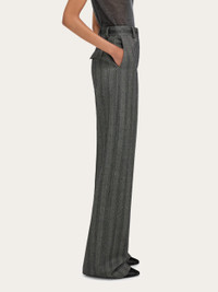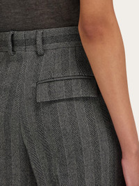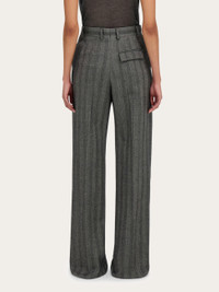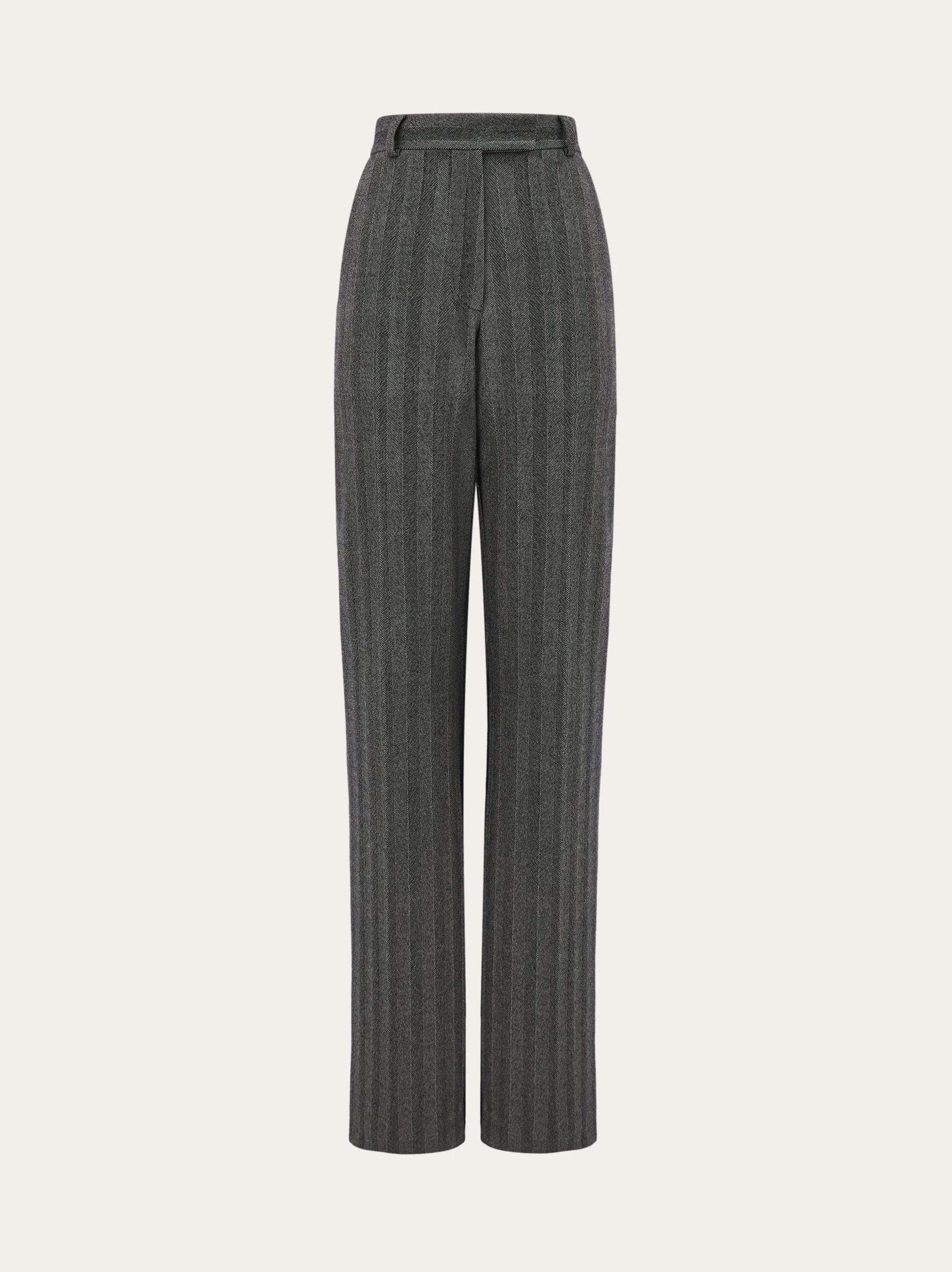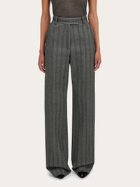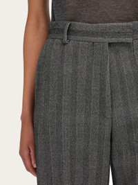 Trousers that hold their shape and allow maximum freedom of movement. Cut from two-tone chevron, this tailored trouser ticks all the boxes. The full bodied fabric is soft and enveloping, with key features inspired by men’s tailoring: the ironed crease and wide waistband cut a decisive silhouette, inspired by the bold expressionism of the roaring 20’s. - Composition: 92% pure virgin wool, 6% polyamide, 2% elastane - Made in ITALY - Product code: 13H458 788168