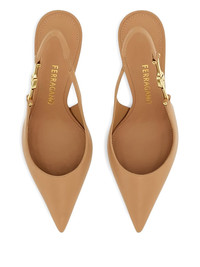 70mm F buckle-slingback pointed-toe sandals Highlights - Beige - Pointed toe - Slingback strap - Gold-tone f buckle - Leather upper Made in Italy Composition Outer: Goat Skin 100% Lining: Goat Skin 100% Sole: Calf Leather 100% SIZE & FIT Measurement HEEL 2.75 in(7 cm)