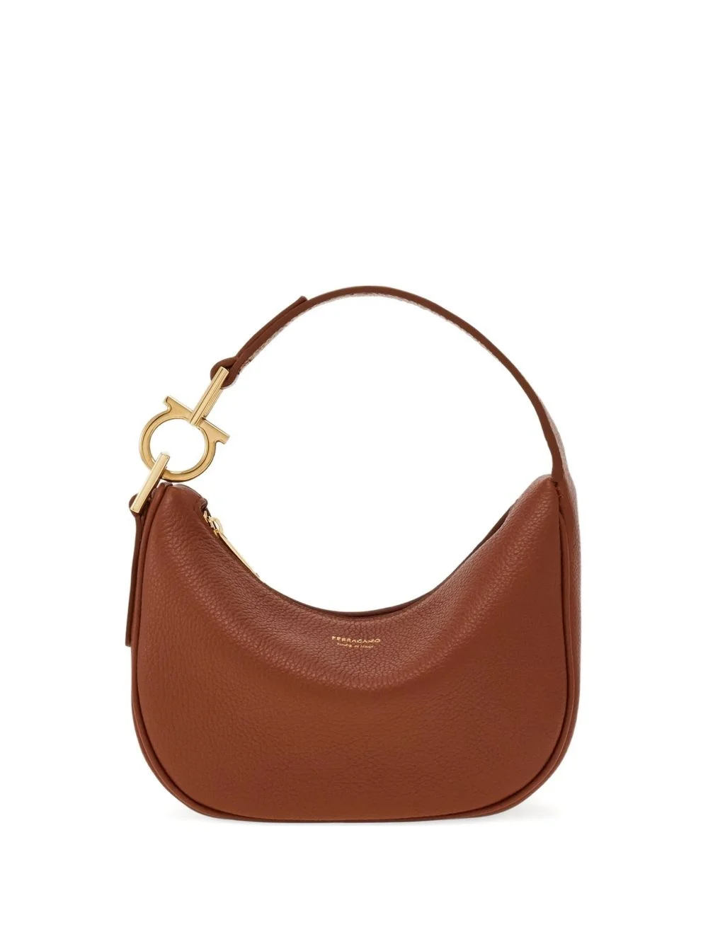 North-South mini bag Highlights - Cognac brown - Top zip fastening - Single top handle - Gancini detail - This piece comes complete with a protective dust bag. Made in Italy Composition Outer: CALFSKIN 100% SIZE & FIT Measurement DEPTH 3.54 in(9 cm) HEIGHT 4.92 in(12.5 cm) WIDTH 7.87 in(20 cm)