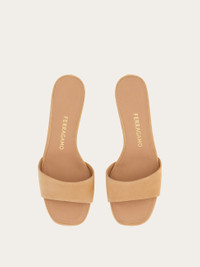 With its clean, almost architectural silhouette, this low heeled mule embodies a new refined femininity from the House of Ferragamo. The toe strap and semi-chunky heel ensure a comfort fit with a sleek, effortless silhouette. - Composition: calfskin suede - Made in ITALY - Product code: 01L203 790186