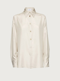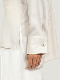 A sophisticated evolution of the silk shirt, with soft lines, drop shoulders and side slits for an effortlessly chic look. The mother of pearl button up front is complemented by three central horn-effect buttons for a sophisticated detail. Metal jewel buttons on the cuffs feature a raised design of the infamous Palazzo Feroni. - Composition: 58% silk, 42% polyester - Made In ITALY