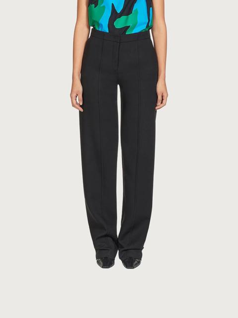 Enticing shades and sumptuous fabrics are this season’s highlights. Technical wool trouser in a beautiful bold hue with a flattering high waist and French pockets. The cut is impeccable, with a wide leg and straight seam for a sharp look. The rubber tag on the back seals the deal. Model measurements: Height 5' 10½"/179 cm, Bust 31"/78.5 cm, Waist 24½"/62 cm, Hips 36"/91 cm - Composition: 50% pure virgin wool, 47% polyamide, 3% elastane - Made In ITALY