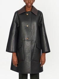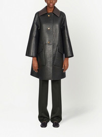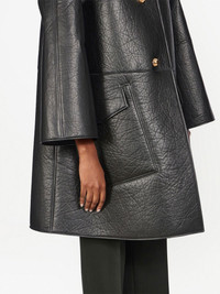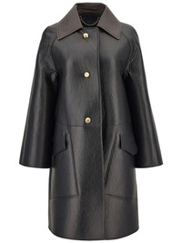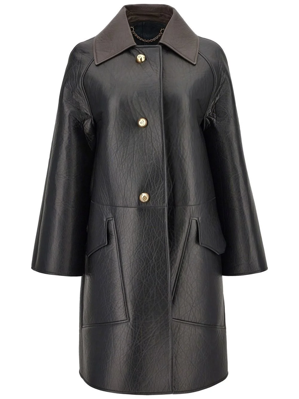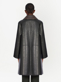 textured nappa-leather coat black/brown nappa leather textured finish wide collar front button fastening long wide sleeves two side flap pockets straight hem Made in Italy Composition Outer: Nappa Leather 100%, Neoprene 100% Washing instructions Specialist Cleaning