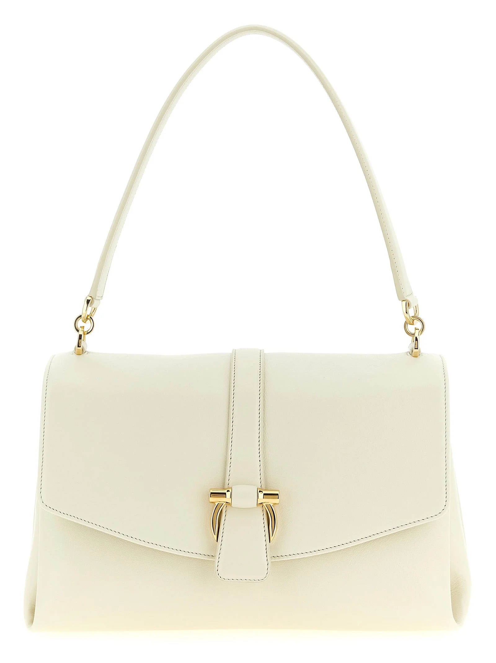 'TH (M)' shoulder bag in calf leather, magnetic flap closure with front 'Gancini' detail, side gussets, fixed handle, adjustable and removable shoulder strap. - Colour: Beige - Composition: 100% calfskin leather (Bos Taurus) - Country Of Manufacture: Italy - Dimension: W 27 x H 20 x D 10 cm - MPN: 791195MASCARPONE