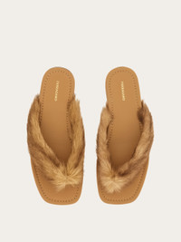 Luxurious and easy to wear, this new Ferragamo sandal ticks all the boxes. Set on a squared last, the contemporary shape has a padded insole and soft, fluffy goat fur along the strap. Rubber sole. - Composition: kid leather and fur - Made in ITALY - Product code: 01K633 788799