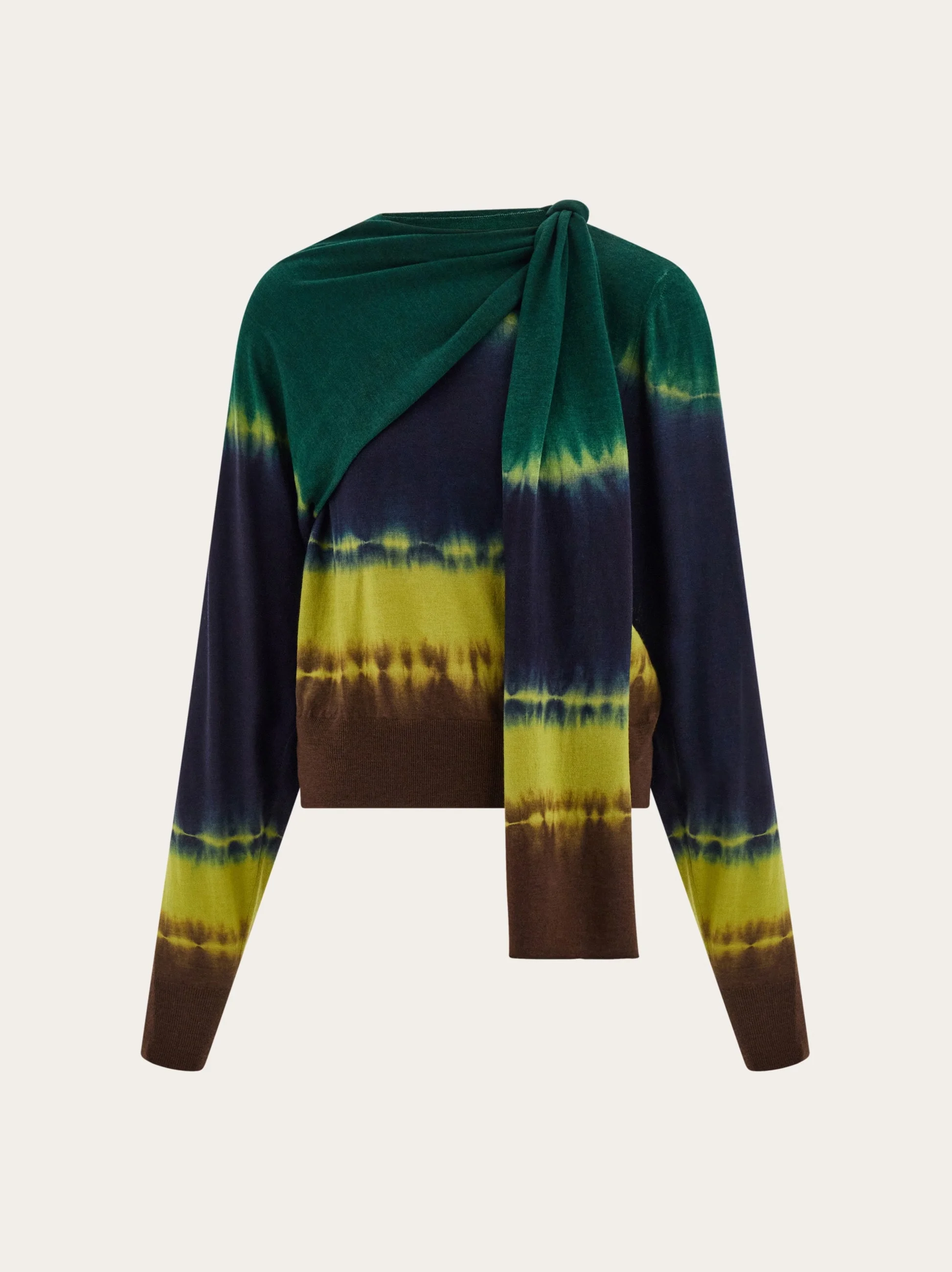 A blend of expert workmanship and original accents, this cozy tie dye jumper is a savvy balance of throwback and directional. Featuring a nineties-inspired tie dye pattern, the enveloping cut has a scarf detail on the right side that wraps across the shoulders. An embroidered signature is placed at the bottom. - Composition: 100% pure virgin wool - Made in ITALY - Product code: 13H390 786418