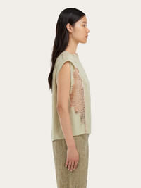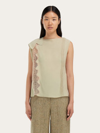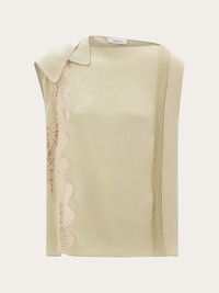 Riffing on the idea of garments passed through the ages, Creative Director Maximilian Davis interprets the well established Italian sprezzatura. Polished and eclectic, this sleeveless silk top with lace inserts plays with the idea of underwear as outwear, with a sensual yet sharp silhouette. - Composition: 100% silk - Made in ITALY - Product code: 13H998 791250