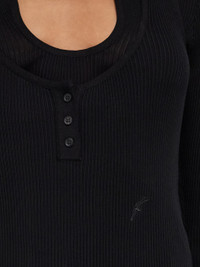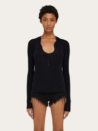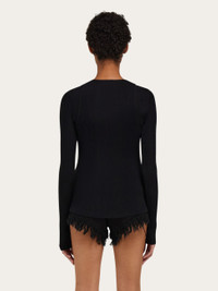 Original outlines with luxurious textures: the vibe of this season's collection. Ribbed cotton long sleeved top with a unique, low cut neckline, complete with tonal embroidery on the left side of the waist. - Composition: 100% cotton - Model measurements: Height 5' 10"/178 cm; Bust 31½ "/80 cm; Waist 23½"/60 cm; Hips 34 "/88 cm - Model wearing: XS - Made in ITALY - Product code: 113261 782752