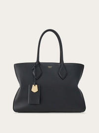 Cinched at the waist, this large unstructured tote folds at the sides to form a star silhouette. Made of calfskin with a natural grain and prepared with vegetable anilines, it has deep covered handles to carry by hand or over the shoulder. Big enough to double up as a weekender, it has a lined interior with zip pocket and badge holder charm with a custom golden plate. Adjustable, removable shoulder strap and protective base studs. - height 25.0 CM / 9.8 IN length 41.0 CM / 16.1 IN width 13.5 CM / 5.3 IN - Composition: calfskin - Product code: 215986 770517 - Made in ITALY