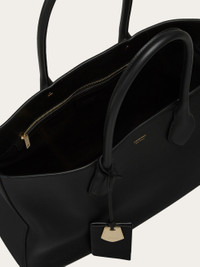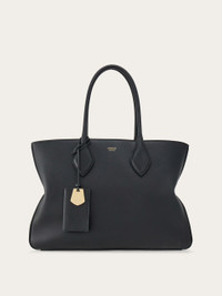 Cinched at the waist, this large unstructured tote folds at the sides to form a star silhouette. Made of calfskin with a natural grain and prepared with vegetable anilines, it has deep covered handles to carry by hand or over the shoulder. Big enough to double up as a weekender, it has a lined interior with zip pocket and badge holder charm with a custom golden plate. Adjustable, removable shoulder strap and protective base studs. - height 9.8 IN length 16.1 IN width 5.3 IN - Composition: calfskin - Made in ITALY - Product code: 215986 770517