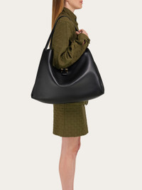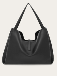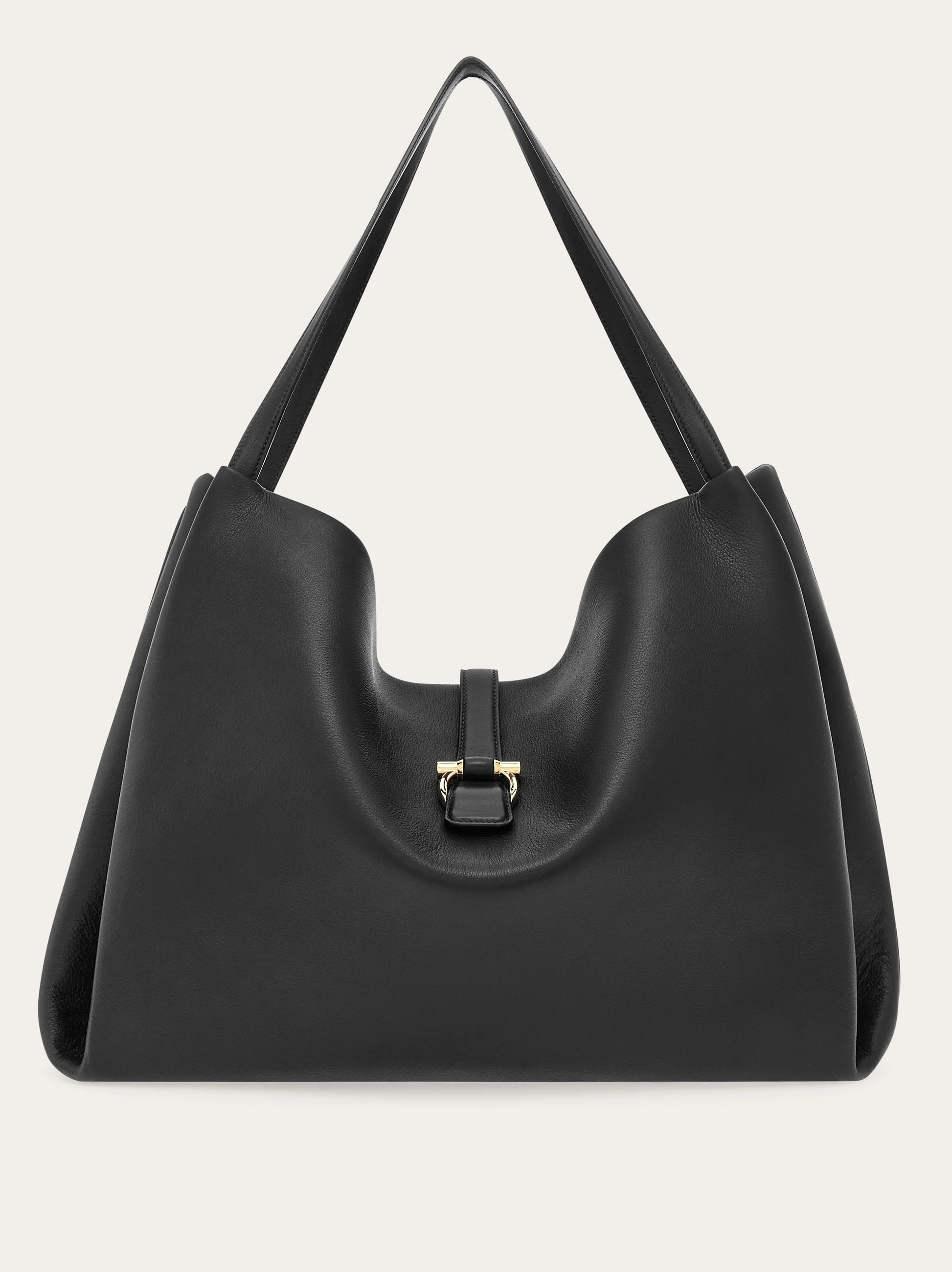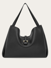 Buy now, carry forever. A softened silhouette and rich materials confirm the iconic status of this new Ferragamo tote. Contemporary yet timeless, this capacious iteration cut from semi-gloss calfskin leather features soft side bellows that evoke the shape of the lily, symbol of the city of Florence. A magnetic golden Gancini clasp fastens the top strap which opens to reveal a tonal lined interior with zip pocket. - A) Height 15.3 IN B) Length 20.4 IN C) Width 7.0 IN - Composition: calfskin - Extra Large - Made in ITALY - Product code: 219805 777339
