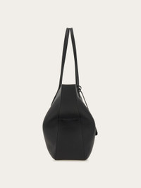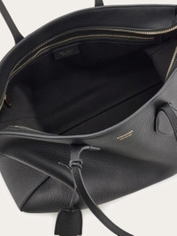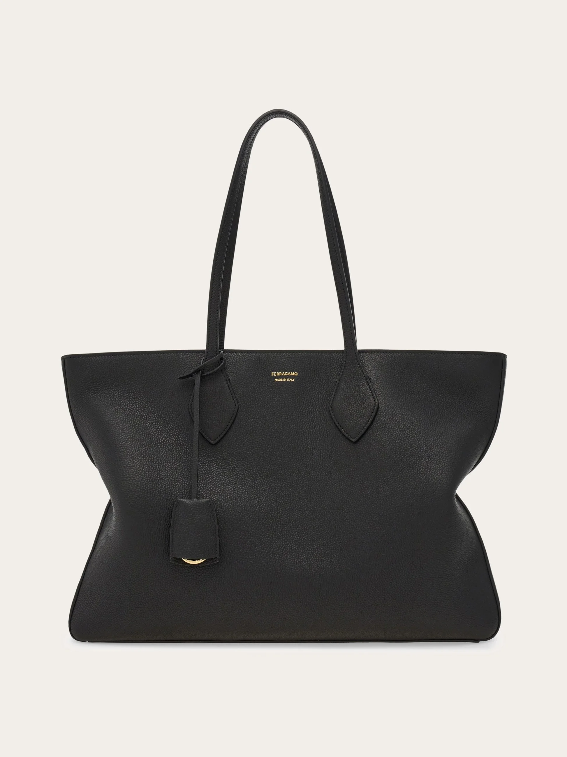 The classic tote, Ferragamo style. Cut from hammered calfskin leather with a rich, dappled texture, this much loved carry all folds slightly at the sides to create a new, original silhouette. This mid-size edition has a lined interior with a flat pocket, and a golden fob keyring hangs from the mid-length top handle, while metal studs protect the base. Adjustable removable shoulder strap. - A) Height 11.8 IN B) Length 16.5 IN C) Width 4.3 IN - Composition: hammered calfskin - Large - Made in ITALY - Product code: 219908 779336