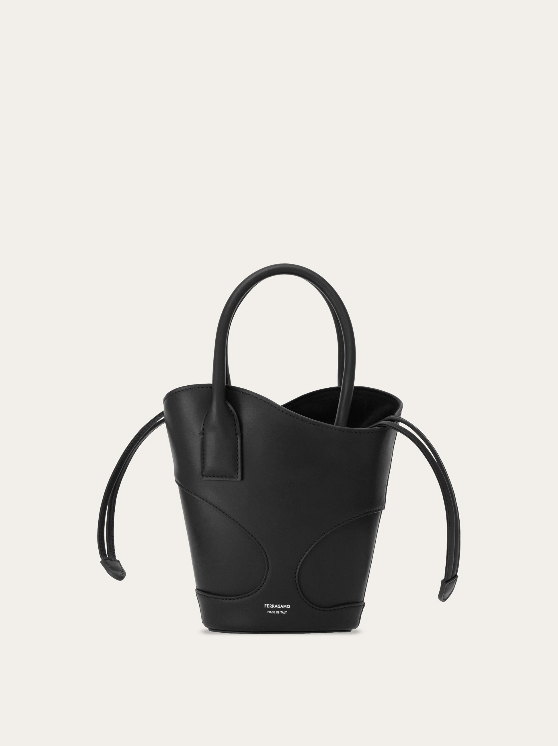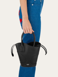 Everyday couture: compact, feminine tote with a bucket silhouette and unique details will elevate any outfit. Made of smooth calfskin, it features a wave shaped edge, asymmetrical handles and iconic tonal inlays on the dials. The drawstring and handle in matching suede add a beautiful textural finish with a refined feel. Carry by hand or over the shoulder via the removable strap. - height 11.8 IN length 7.4 IN width 2.5 IN - Composition: calfskin - Made in ITALY - Product code: 215933 768959