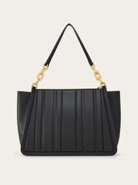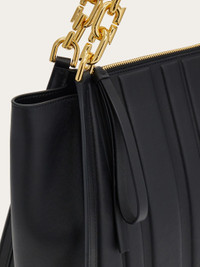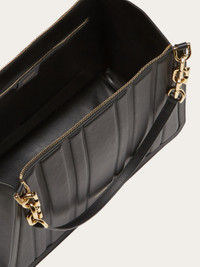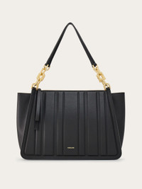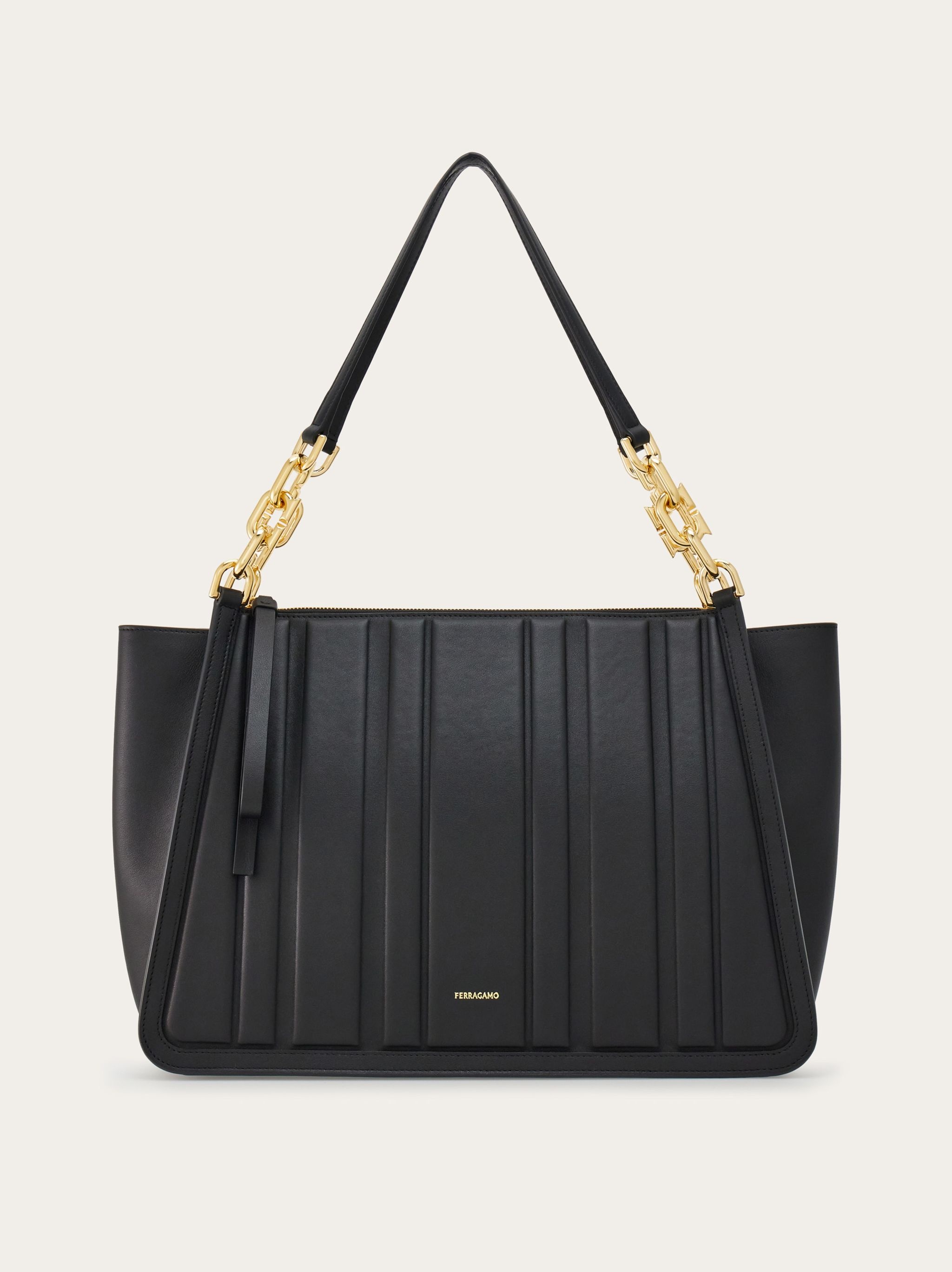 Elegant and metropolitan, this new Tote bag features panels decorated with geometric quilting. The zip fastening and wristlet reveal a lined interior with zipped pocket. Chain-insert handles featuring the new Gancini silhouette. - height 28.0 CM / 11 IN length 44.0 CM / 17.3 IN width 17.0 CM / 6.6 IN - Composition: calfskin - Product code: 214184 765568 - Made in ITALY