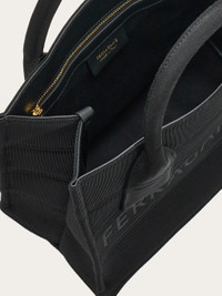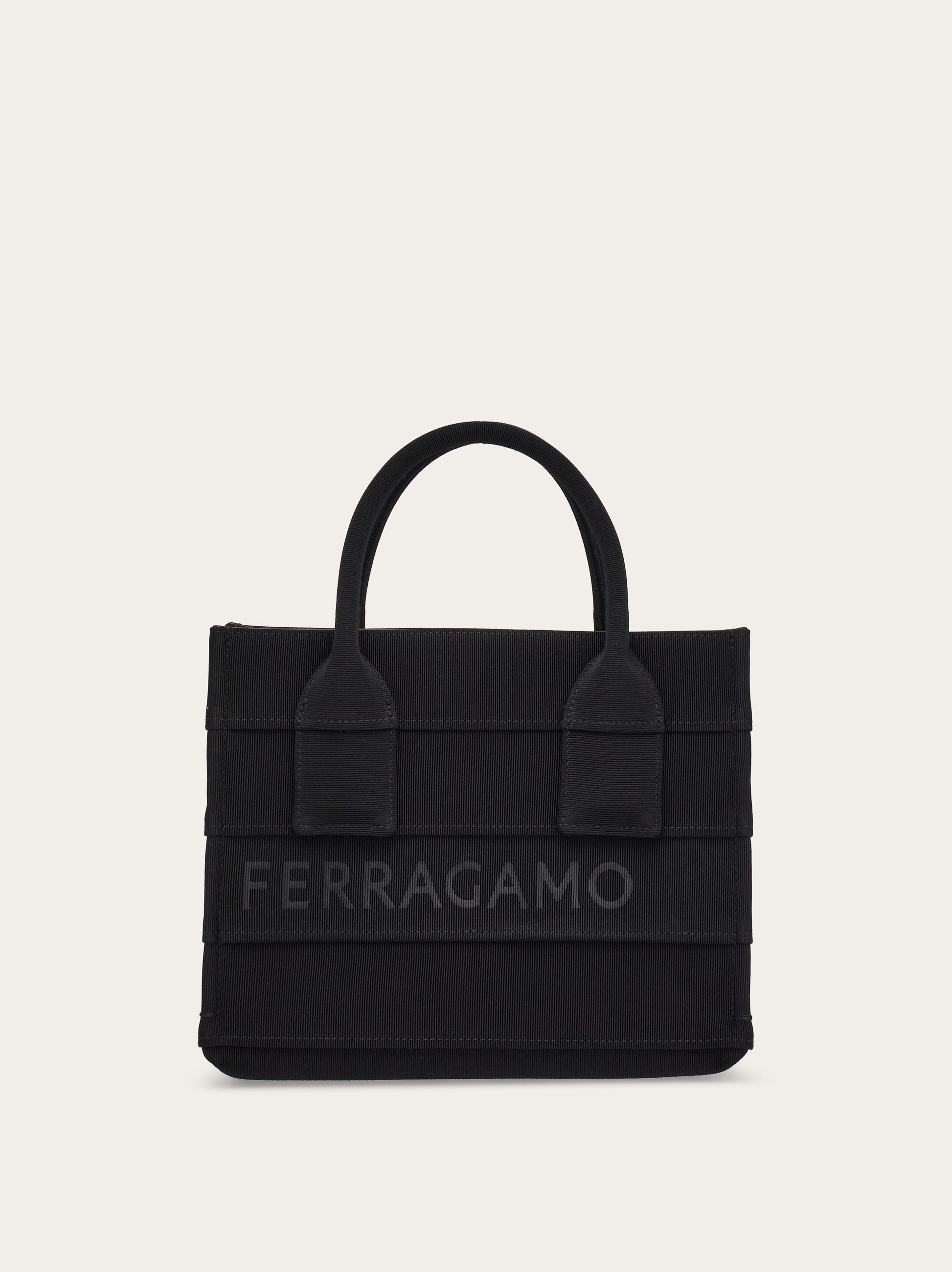 The compact version of the collection’s new Tote bag features an overlapping gros-grain structure and the large tonal brand name on the front. Carry as a handbag with the leather-covered handles. - height 8.2 IN length 10.4 IN width 5.5 IN - Composition: fabric - Made in ITALY - Product code: 214988 765802