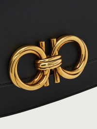 The compact version of our Trapezio bag in soft calfskin. The semi-rigid structure with lined double compartment on the interior and a flat back pocket. Antiqued-finish interwoven Gancini fastening and an adjustable strap so it can be worn on the shoulder or cross-body. - height 13.0 CM / 5.1 IN length 27.0 CM / 10.6 IN width 7.0 CM / 2.7 IN - Composition: calfskin - Product code: 212916 759141 - Made in ITALY
