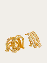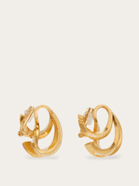 Statement hoop earrings reinterpreted with a triple Gancini design in graduated sizes, embellished with crystals. Finished in light gold with clip-on fastening. - Composition: 60% brass and 40% crystals - Made in ITALY - Product code: 760906 788156