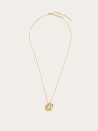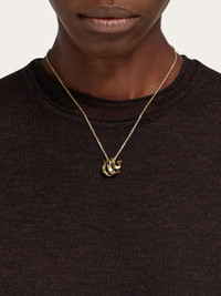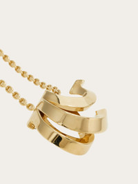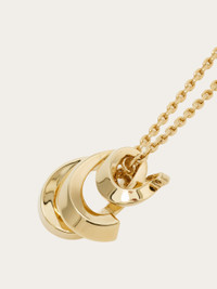 Metal chain necklace with a light gold finish and adjustable lobster clasp closure. The pendant features a trio of Gancini in graduating sizes, sculpted in a dimensional, draped effect. Finished with a custom tag. Also available in a version with crystal embellishment. - Composition: 100% brass - Made in ITALY - Product code: 760915 788186
