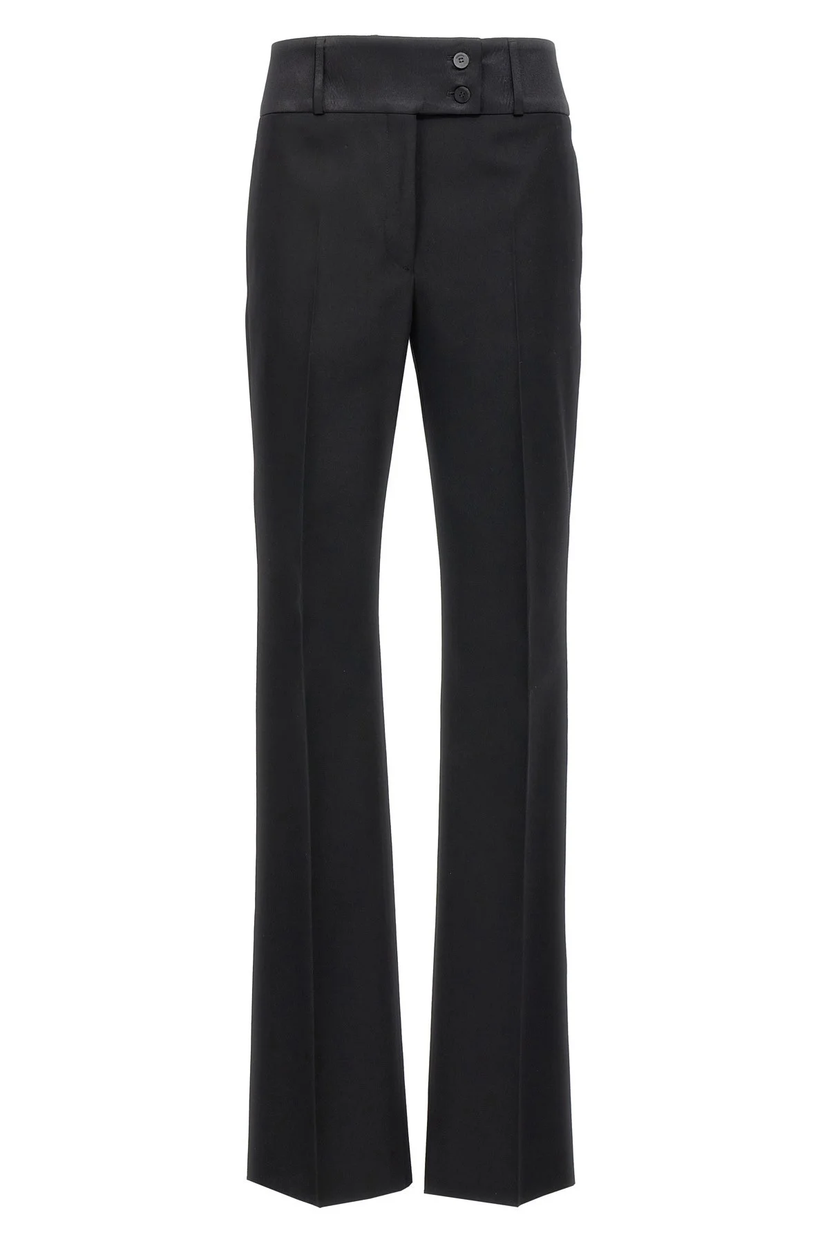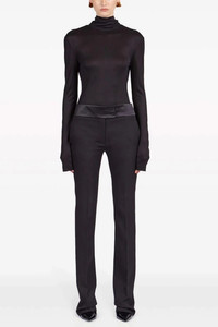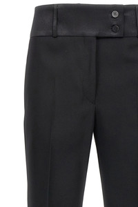 cod. 770080NERO Virgin wool tuxedo pants with satin band at the waist, straight leg, zip and button closure. Color: Black Size & Fit: true to size fit Composition: 100% virgin wool
