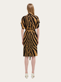 A classic silhouette with a contemporary feel, this new edition of the Ferragamo shirt dress is cut from stretch viscose twill. As the front yoke extends out to the sleeves, exposed buttons along the placket echo a safari aesthetic, while the waist is cinched by a removable belt with square buckle. The print is an updated version of an archive motif designed by Salvatore Ferragamo himself. - Composition: 96%, 4% elastane - Made in ITALY - Product code: 13H906 790763