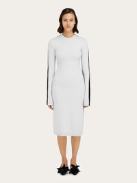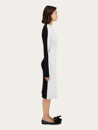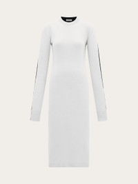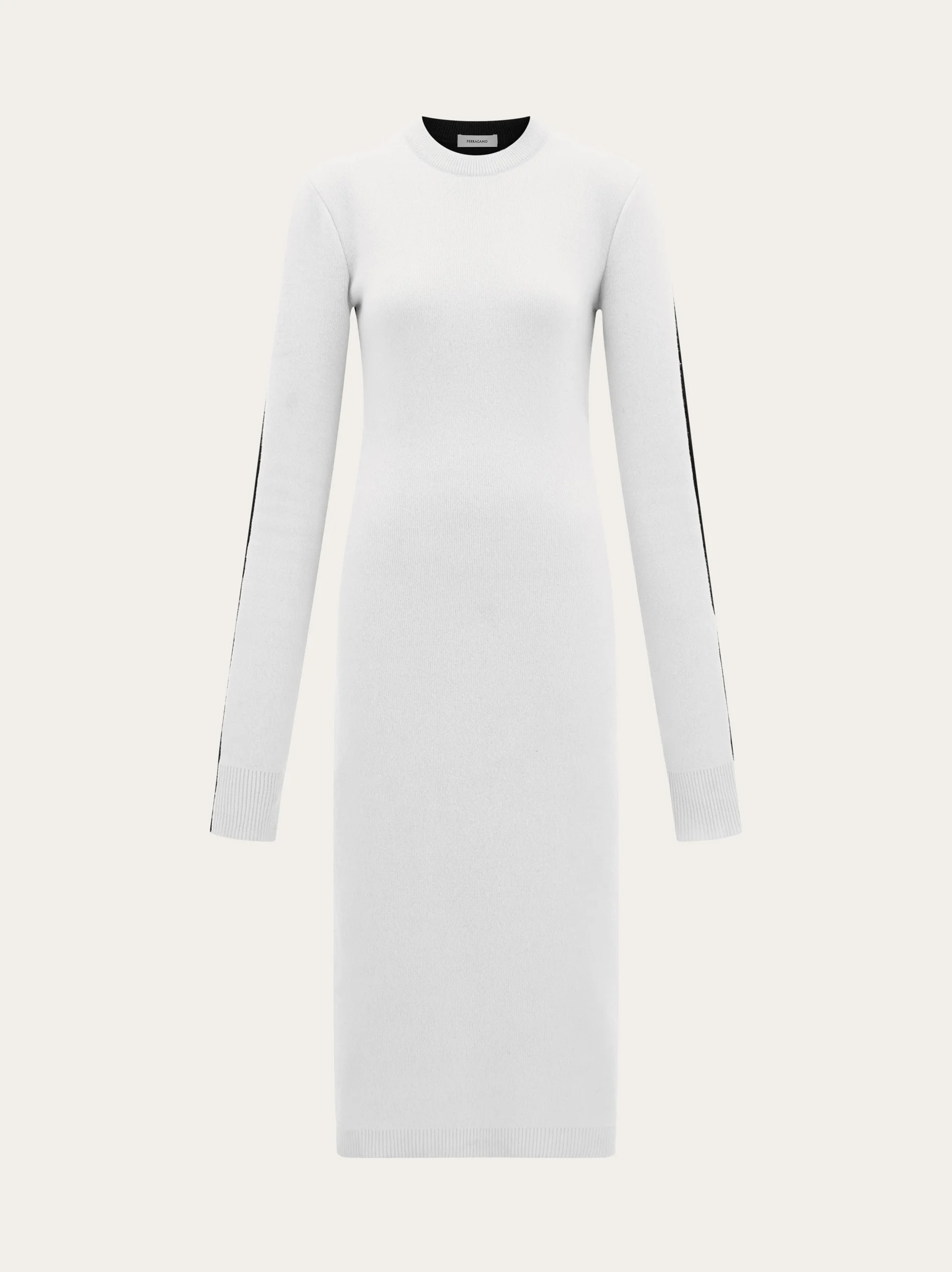 Clean cut knitted dress made from a refined blend of pure virgin wool and cashmere, with a touch of elastane and striking two-tone construction. The comfortable slip on is inspired by the personal wardrobe of choreographer Pina Bausch, and features ribbed details on the cuffs, crew neck and bottom hem. - Composition: 66% pure virgin wool, 29% cashmere, 4% polyamide, 1% elastane - Made in ITALY - Product code: 13H689 788232
