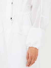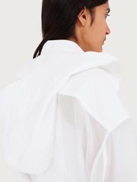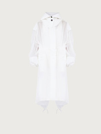 Voluminous, luxurious silk trench with a contemporary edge. Cut from organza silk, the relaxed fit cinches at the waist to define the female form. Removable hood, covered button fastening. Model measurements: Height 5' 11 "/180 cm, Bust 30½"/78 cm, Waist 23½"/60 cm, Hips 34½"/88 cm Worn size: 38 - Composition: 71% silk, 29% polyamide - Made In ITALY