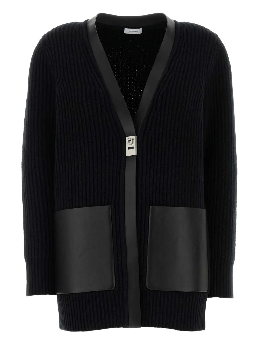 V-neck cardigan Highlights - Black - V-neck - Front pockets - Ribbed knit - Long sleeves Made in Italy Composition Wool 100%, CALFSKIN 100% Washing instructions Read Manufacturer Guidelines