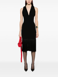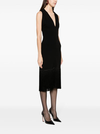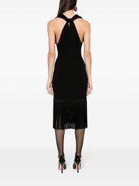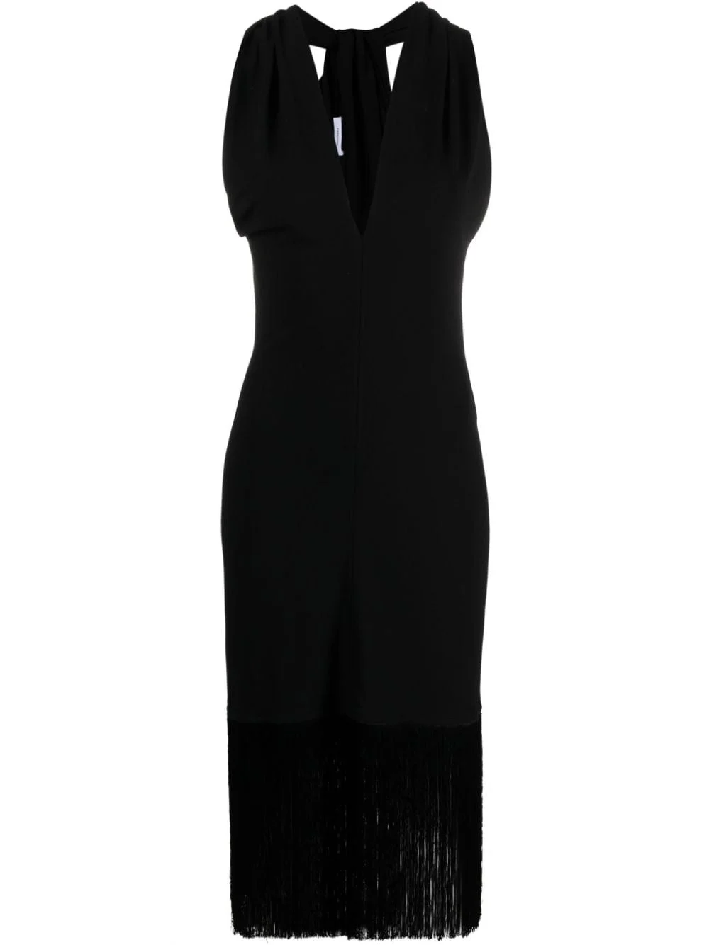 V-neck fringed midi dress Highlights - Black - Twist detailing - Fringed edge - V-neck - Concealed side zip fastening - Sleeveless - Mid-length Made in Italy Composition Viscose 95%, Elastane 5% SIZE & FIT Model measurements Height 5 ft 11 in(1.8 m) Bust/Chest 31.49 in(80 cm) Hips 36.22 in(92 cm) Waist 25.59 in(65 cm) FittingInformation Designed for a close fit throughout Made from a midweight stretch fabric, this piece offers elasticity and flexibility when worn This piece fits true to size – take your usual size