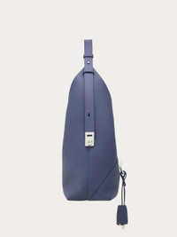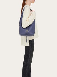 A clean silhouette with luxurious details, the new Ferragamo hobo bag is cut from hammered calfskin. The dappled leather is pierced by golden Gancio hardware, and the geometric shape with deep V front speaks the language of seventies style. Tonal charms add a playful twist. - A) Height 9.0 IN B) Length 9.0 IN C) Width 5.1 IN - Composition: hammered calfskin - Medium - Made in ITALY - Product code: 21A047 784634