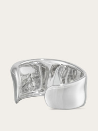 Large pure silver bangle with organic shapes and details that echo the lines of the Vara buckle. The central engraved logo adds a touch of personality. The rhodium-plated finish ensures shine and durability, with an anti-oxidation effect. - Composition: 100% silver - Small - Made in ITALY - Product code: 780037 780676