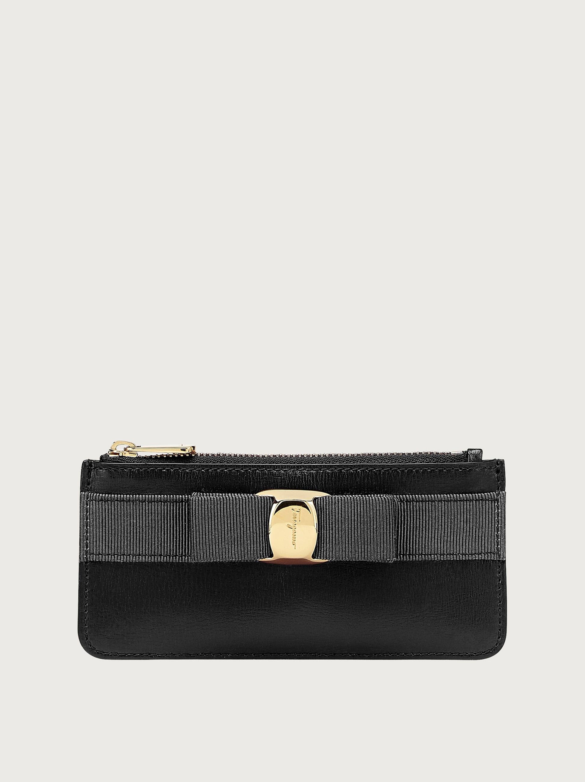 Discreet, functional and super stylish. This colored and iconic accessory is part of a new generation of practical romance: hammered calfskin leather credit card holder decorated with the new edition Vara bow with revised proportions and a grand gros grain ribbon. Versatile and functional, it has an interior pocket with zip and several card slots. - height 3.1 IN length 5.9 IN - Composition: hammered calf leather - 6 external card slots, 1 card slot, 1 compartment - Made in ITALY - Product code: 22E010 734494