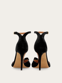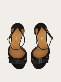 A sensual silhouette with something of an effortless flair, this new Ferragamo sandal is the perfect balance of high-end ladylike glamour and cool girl nonchalance. The slim toe straps are topped with a tonal gros grain Vara bow and the ankle strap is cut in a sensual V-shape at the heel. They make it look so easy. Slim tonal covered heel. - Composition: kid suede - Made in ITALY - Product code: 01L432 791787