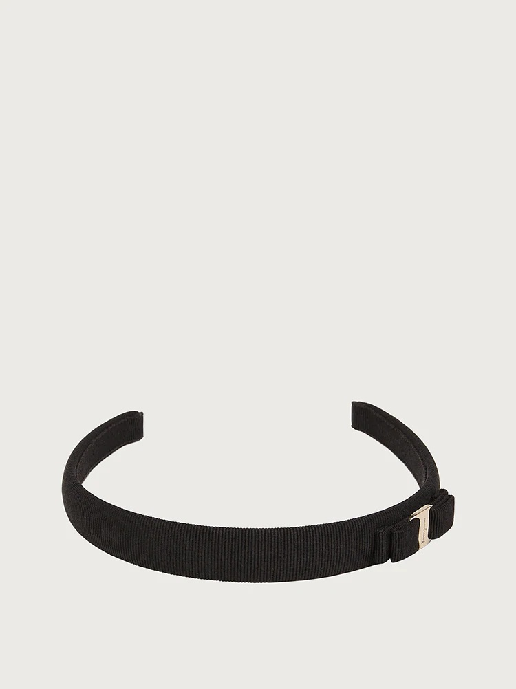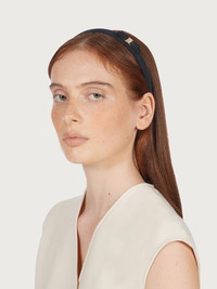 This fabric headband is adorned with a Vara bow and gold-tone plate engraved with the Ferragamo logo. A perfect accessory to add a touch of elegance to every look. Circumference: 36,5 cm. Width in the middle: 2,2 cm. - Composition: fabric - Made In ITALY