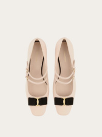 The iconic Mary Jane rewritten in a Ferragamo key. Romantic allure and practical style blend harmoniously: the tonal block heel matches the gros grain bow, held by a signature buckle, and two slim straps across the instep add a graceful twist with a secure hold. - Composition: nappa - Heel 3.0 cm - Made in ITALY - Product code: 01J915 782518