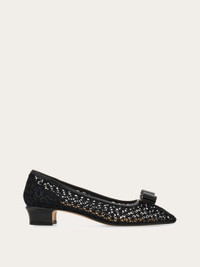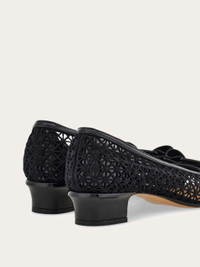 Sensual style with an artisanal feel. Ferragamo interprets a beloved silhouette in the key of black macrame lace. The upper is strategically reinforced and adorned at the tip with a tonal Vara bow, and the low heel is given a more contemporary silhouette. - Composition: fabric - Made in ITALY - Product code: 01L443 791741