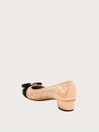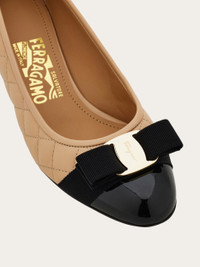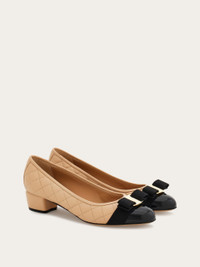 A simple, elegant classic with a modern twist. The iconic Ferragamo pump shoe has a new look in quilted nappa leather. This sumptuous slip on has a grosgrain Vara bow across the toe and a contrasting patent insert. Chic and timeless. - Composition: nappa and patent leather - Made in ITALY - Product code: 01M832 702227