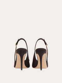 Simply stunning in the softest kid suede, Ferragamo defines contemporary femininity with this new slingback. The straight heel, almond toe and Vara grosgrain bow bring together iconic elements with modern geometries for a romantic shoe with a commanding presence. - Composition: kid suede - Made in ITALY - Product code: 01L430 794393